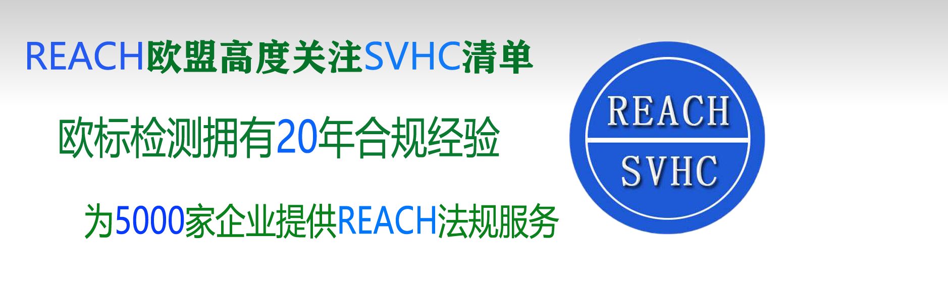 歐盟REACH/SVHC測試 寧波歐標檢測機構(gòu)所提供的REACH法規(guī)及SVHC測試服務(wù),可以為您的產(chǎn)品提供SVHC物質(zhì)識別和濃度測定測試服務(wù),協(xié)助您確定產(chǎn)品中是否含有REACH法規(guī)禁用的化學物質(zhì),幫助您履行REACH法規(guī)義務(wù),助您的產(chǎn)品順利贏得歐盟市場的青睞。